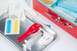 A táska úgy van tervezve, hogy könnyen hordozható és minden egészségügyi eszköz tárolható benne.