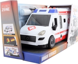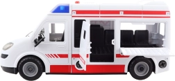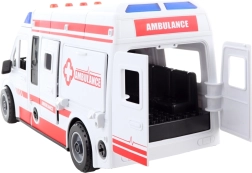 A modell 3× AG13 elemmel működik (a csomag tartozéka), és négy hangmódot kínál – sziréna, duda, indítás és dallam. A vezető oldalán és hátul nyitható ajtók megkönnyítik a „betegek” hordágyra helyezését és a fülkéhez való hozzáférést.