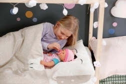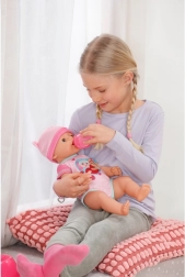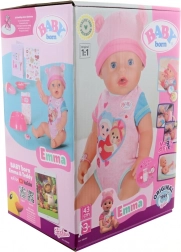 Emma egy aranyos BABY born baba valósághű funkciókkal, amelyeket a gyerekek imádnak. Vizet iszik az üvegből, a cumi elfordítására kinyitja és becsukja a szemét, tud könnyezni, és pelenkába vagy a bilibe pisilni. Tartós kialakításának köszönhetően a fürdetést is jól bírja, így a gyerekek a kádban és azon kívül is rengeteg mókát élhetnek át vele.