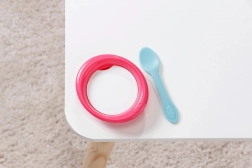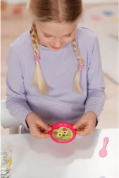 A tányéron vízzel érintkezve megjelenik az étel, a bilin pedig „varázslatosan” láthatóvá válik az eredmény. Remek módja a gondozási rituálék játékos elsajátításának.