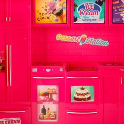 Ez a készlet a fagylaltárus és a lakókocsis vezető szerepjáték előnyeit kombinálja, ami teret ad a gyermekek képzeletének és készségeinek fejlesztésére.