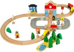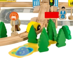 Élvezze a kreativitással teli pillanatokat a fa vonatszettel. A készlet 50 darabot tartalmaz, amelyeket simára csiszoltak, így biztonságot és tartósságot nyújtanak játék közben. Tartalmaz vonatot vagonnal, autókat, épületeket, figurákat és városi dekorációkat, amelyeket tetszés szerint lehet elrendezni, hogy saját kis várost teremtsen.