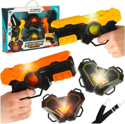 Szórakoztató készlet otthoni és kültéri lézerharcokhoz: 2 infravörös gyerekpisztoly és 2 interaktív, fényjelzéssel ellátott célpont. Akciódús, érzelmekkel teli játékot kínál, fejleszti a gyors reakciókat és a pontosságot, valamint támogatja a aktív, szabadtéri mozgást. Hatótáv akár 15 m, egyszerű kezelés és egyértelmű szabályok – az nyer, aki elveszi az ellenfél mind a 6 életét.