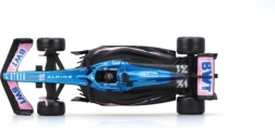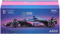 Élvezze a ALPINE A523 versenyautó autentikus replikáját a 2023-as szezon kivitelében. Az 1:43 méretarányú modell fém alkatrészeket ötvöz részletgazdag műanyag elemekkel, éles vonalakat kínál az első és hátsó szárnynál, valamint gondosan kidolgozott gumiabroncsokat. Nem hiányzik a 31-es rajtszám és a jellegzetes BWT kék–rózsaszín dizájn sem.
