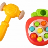 A színes figurák finom ütögetése támogatja a kéz‑szem koordinációt, a fogás pontosságát és a gyerekek gyors reakcióit.