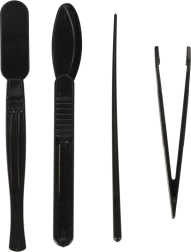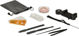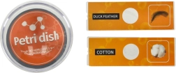 A készlet része két előkészített tárgylemez mintákkal (kacsatoll és pamutszálak) és négy üres tárgylemez saját minták elkészítéséhez. Ez az eszköz lehetővé teszi a gyerekek számára, hogy saját mintákat készítsenek, ami tovább fokozza érdeklődésüket és ügyességüket. A csomag alapvető eszközöket is tartalmaz, mint például csipesz és műanyag szike, hogy megkönnyítse saját minták előkészítését.