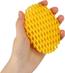 Különleges szerkezete stimulálja a kéz érintő receptorait, ami kellemes és megnyugtató szenzoros élményeket nyújt. Továbbá segít a gyerekeknek a manuális készségek fejlesztésében a játékos tanulás révén.