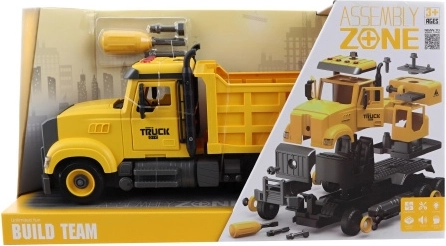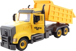 Nagy, jól sikerült csavarozható billenőplatós teherautó. 3 db AG13 elemmel működik, melyek a csomag részét képezik. A tetőn 4 gomb található funkciókkal: indítás, dudálás, tolatáskor csipogás és dallam. A csavarhúzó a csomag tartozéka. Az ajtók nyithatók, a billenés funkcionális. Anyaga műanyag. Nyitott dobozban csomagolva. A csomag mérete kb. 41×22×13 cm. Az autó mérete 37×14×11 cm. Ajánlott életkor: 3+.