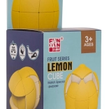 Szórakoztató logikai fejtörő kocka citrom alakban, forgatható szegmensekkel, 3 éves kortól. Fejleszti a finommotorikát, a logikus gondolkodást, és élénk színeivel felkelti az érdeklődést.