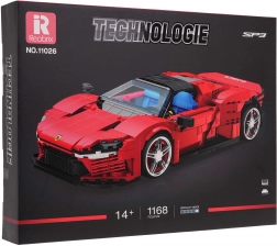 Építsen meg egy részletes piros szupersportkocsit 1168 darabból – átgondolt modell felfelé nyíló ajtókkal, levehető tetővel és élethűen kidolgozott belső térrel, amely a tiszta első „szélvédőn” át látható. Ideális 14 éves kortól, fejleszti a kézügyességet, a térbeli képzelőerőt és a türelmet. A csomag része egy képes útmutató és matricák a végső megjelenéshez.