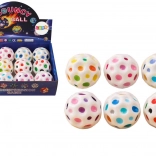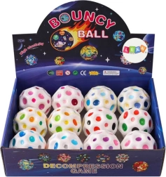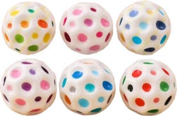 Szórakoztató űrgolyó fehér színben, színes mélyedésekkel, amely gyors pattogást, nyomkodási lehetőséget érzékszervi megnyugtatáshoz és remek szórakozást kínál gyerekeknek és felnőtteknek. A 7 cm-es átmérőnek köszönhetően ideális otthonra és szabadtérre, támogatja a finommotorikát és a koordinációt.