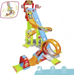 Indítsd a versenyt villámgyors kilövéssel, és nézd, ahogy a kisautók átszáguldanak a nagy loopingon. Remek sebesség és szórakozás a kis versenyzőknek.