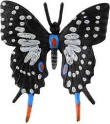 Ez a minőségi lepke modell a Papilio nemzetség jellegzetes jegyeit ragadja meg – elegáns fekete szárnyak fehér foltokkal, finom kék és piros akcentusokkal. Valósághű kidolgozásának köszönhetően kiváló kiegészítő természetkedvelőknek, iskoláknak és múzeumoknak.