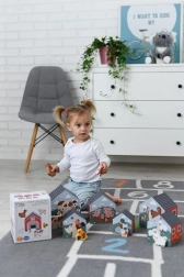 Hasznos és esztétikus játék, amely kiválóan alkalmas eredeti ajándéknak 2 éves kortól. Kemény kartonból és fából készült.
