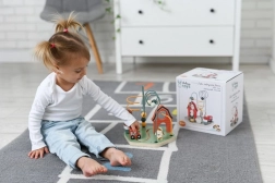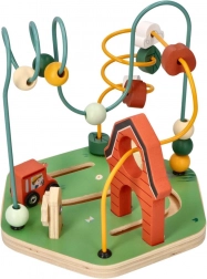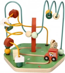 A labirintus ergonómikusan van megtervezve a kis kezek számára, és továbbra is erősíti az önálló játékot és kreatív képességeket az élénk színek és változatos gyöngy formák révén. A masszív fa alap és a fémhuzalok révén nagyon tartós.