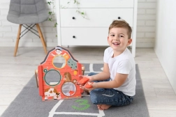 Tartós fa szerkezet vidám parasztházi illusztrációkkal garantálja a hosszú élettartamot és a biztonságos játékot.