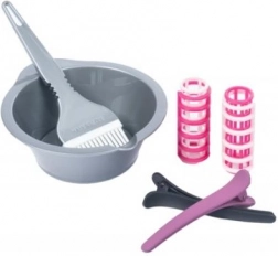 Tálka, ecset, csipeszek és hajcsavarók támogatják a fantáziát a „festés” és a frizurák formázása során. Biztonságosan, rendetlenség nélkül.