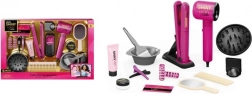 A készlet része a hajvasaló, a praktikus fésű és a tükör – ideális kombináció a frizura alakításához játék közben.