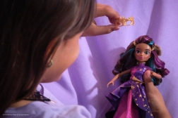 Gondoskodj Sophia megjelenéséről a styling eszközzel. Tedd teljessé a szettjét aszimmetrikus ruhával, maszkkal és lila csizmákkal.