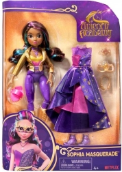 Bemutatjuk a Sophia Masquerade babát a népszerű Egyszarvú Akadémia sorozatból. Ez a 23 cm magas baba a Netflix és a kedvelt könyvek ihletésére készült, és varázslatot, valamint kreativitást hoz az otthonodba. Sophia részletgazdag kidolgozású, és 9 divatkiegészítővel érkezik, köztük levehető dzsekivel, nyaklánccal és cipőkkel, amelyeket könnyedén lecserélhetsz aszimmetrikus ruhára, övre, maszkra és lila csizmákra.
