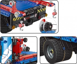 A modellt 3,7 V-os akkumulátor hajtja (a csomag tartalma), míg a vezérlő 2× AAA 1,5 V elemmel működik (nem tartozék). A 4×4 hajtás segít leküzdeni az akadályokat, a realisztikus arányok pedig hűen idézik a valódi vontató járművet. Az érthető, képes útmutató a fiatalabb építőknek is megkönnyíti az összeszerelést.