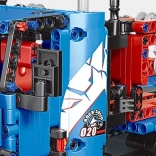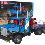Ez a részletes teherautó-építőkészlet valósághű kidolgozást és számos mozgó elemet kínál: nyitható motorháztető és fülkeajtók, állítható tükrök, valamint működő vontatómechanizmus kampóval és emelőkarokkal. A távirányításnak (előre/hátra/jobbra/balra) köszönhetően RC vezérlővel vagy mobilalkalmazással a vezetés egyenletes és szórakoztató.