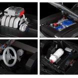 Műszaki részletek között szerepel a motorháztetőn elhelyezett levehető motor és az illusztrált útmutató, amely lépésről lépésre végigvezet az építésen.