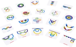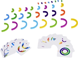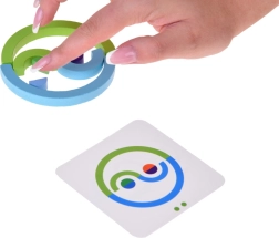 A készlet tartalmaz 20 kétoldalas kártyát különböző nehézségi fokozattal. A kártyák a különböző életkorok és képességek szerint készültek, segítve ezzel a gyermek fokozatos fejlődését. A gyermek különböző mintákat és szerkezeteket hozhat létre, ami különösen kreativitást és önálló gondolkodást fejleszt.