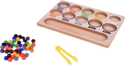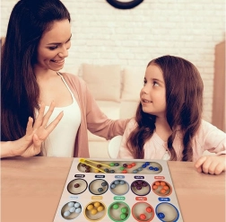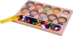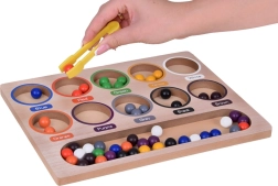 Fából készült oktatási mozaik színes golyókkal több mint játék. Ez egy eszköz, amely segít fejleszteni a finommotorikát és a kéz-szem koordinációt. Gyermekek megtanulnak különböző színeket felismerni, az alapvető számolást és szervezést, ami támogatja a kognitív fejlődésüket.
