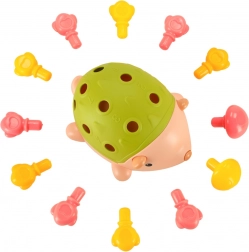 Ez a színes sün levehető pálcikákkal remekül fejleszti a 18 hónapos kortól ajánlott gyerekek készségeit. A gyerekek a pálcikákat könnyedén kihúzzák és visszadugják a számozott nyílásokba, így gyakorolják a fogást, a pontosságot és a koncentrációt. A lágy, kellemes színek és a barátságos megjelenés természetesen vonzza a figyelmet.