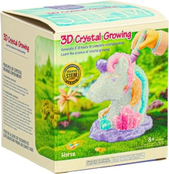 Ez a szórakoztató készlet a kémiai kísérletet ötvözi az unikornis mesés témájával. A gyerekek maguk készítik el az oldatot, hagyják, hogy a kristályok a gipsz modellen megnőjenek, végül pedig festékkel fejezik be a saját unikornisukat. Az eljárás egyszerű, az eredmény pedig igazán látványos.