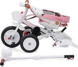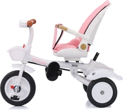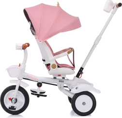 A 2 az 1-ben Futuro Princess Chipolino napellenzős tricikli a kényelmet, biztonságot és szórakozást egyesíti. A forgatható ülésnek (menetiránnyal szemben és megegyezően), a magasságban állítható szülői tolókarnak és az összehajtható elemeknek köszönhetően könnyen alkalmazkodik a gyermek és a szülő aktuális igényeihez. A kormányon található fények és zene minden utat örömteli élménnyé varázsolnak.