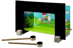 A figurákba ragasztott mágnesek vonzódnak a vezető pálcák mágneséhez, így a gyerekek biztonságosan és finoman mozgathatják a szereplőket a színpadon.