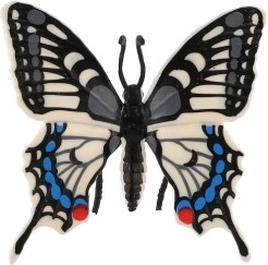 Valósághű modell a édeskömény-farkasalma pillangóból, strapabíró műanyagból, kb. 8 cm hosszúságban, amely a gyerekeket és a felnőtteket egyaránt lenyűgözi. Részletgazdag színezésének és hűséges szárnymintázatának köszönhetően ideális dekorációnak, oktatási célokra és gyűjtői darabnak is.