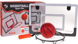 A készlet tartalmaz mindent, amire a kosárlabdához szüksége van: tabló, gyűrű, háló, labda és pumpa.