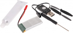 A csomag tartalmazza az összes szükséges alkatrészt az összeszereléshez, beleértve a tartalék propellereket, USB töltőt és akkumulátort is, ezzel biztosítva, hogy a repülőgép pillanatok alatt repülésre készen áll.