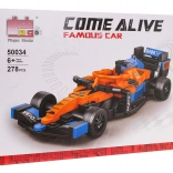 Ez a kreatív építőkészlet mindent tartalmaz, amire a fiatal és kezdő autósport-rajongóknak szükségük van egy élethű F1 versenyautó megépítéséhez. A 278 precízen megmunkált elemnek köszönhetően minőségi műanyagból részletgazdag, narancs-kék autót állíthatsz össze autentikus elemekkel.