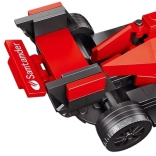 A teljes, minőségi műanyag elemekből álló készlet segítségével részletgazdag, piros F1 által ihletett autót építhetsz – játékra és kiállításra egyaránt ideális.