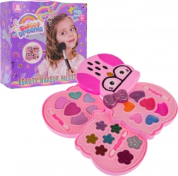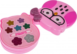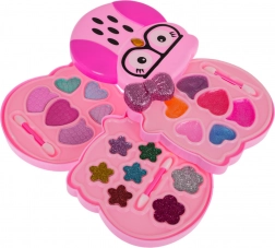 A rózsaszín bagoly alakú sminkpaletta átlátható szintekre nyílik, finom és élénk színekben pompázó szemhéjpúderekkel és balzsamokkal. Kompakt méretének és kihajtható kialakításának köszönhetően otthonra és utazáshoz is ideális. Minden termék könnyen leöblíthető vízzel és kíméletes a gyermekbőrhöz.