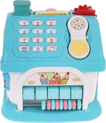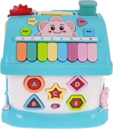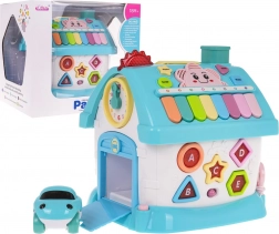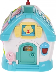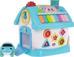 Az interaktív házikó minőségi műanyagból, vonzó színekben készült, és úgy tervezték, hogy játékos formában fejlessze a formák, betűk és számok felismerését. A négy oldal mindegyike más-más tevékenységet kínál – a valóban mozgó mutatókkal ellátott órától és a garázsajtóktól kezdve, a ábécével és háttérvilágított formákkal ellátott oldalon át egészen a kulccsal nyitható bejárati ajtóig fénnyel és hangokkal. A csomag része egy kis autó is, még több játéklehetőséghez.