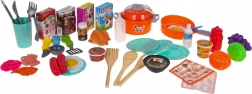 A csomagban akár 42 kiegészítő található – lábasok, serpenyők, eszközök, edények és élelmiszerutánzatok. A gyerekek gyakorolják a finommotorikát, a kommunikációt és az étkezési alapokat. A játékkonyha ideális önálló és csoportos játékhoz is.