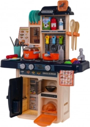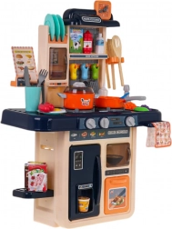 Ez a kiváló minőségű, élénk színekben pompázó műanyag játékkonyha autentikus főzési élményt nyújt a gyerekeknek. A megvilágított égők valódi sütés- és bugyborékoló hangokkal, a valósághű gőz és a működő csapból folyó víz fejleszti az érzékelést és a képzelőerőt. A nyitható hűtő, sütő és mikrohullámú sütő bőséges helyet biztosít a játékhoz és a tároláshoz.