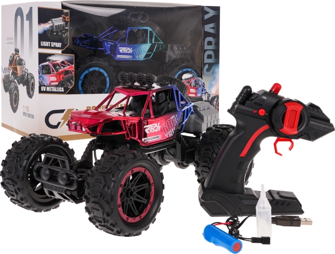 A tartály vízzel való feltöltése után a játékautó menet közben finom vízpárát bocsát ki, amely a LED háttérvilágítással valósághű füsthatásként jelenik meg. A 2,4 GHz-es vezérlés stabil, zavarásmentes jelet biztosít.