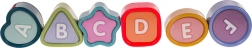 A tető egyik oldalán xilofon ütővel, a másikon 6 forma válogatása a motorika és a logika fejlesztéséhez. A hordozást kicsúsztatható fogantyú segíti.