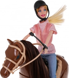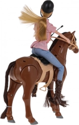 Ez a látványos szett összeköti a babák és a lovak világát – ideális a kis lovaglásrajongóknak. A babának mozgatható karja, lába és feje van, valamint gyönyörű, hosszú haja. A ló 3× AA elemmel működik (a csomagban), és tud elindulni előre, fejével mozogni és nyeríteni, így a játék maximálisan élethű.
