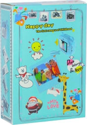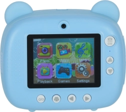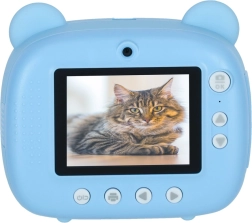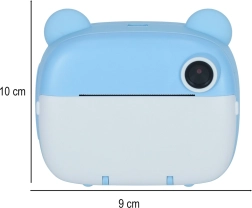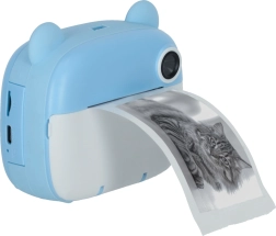 Aranyos gyerek azonnali fényképezőgép kék mackó dizájnnal, amely a beépített hőnyomtatónak köszönhetően azonnal fekete-fehér képeket nyomtat. Két objektívvel rendelkezik, 1080p videót rögzít, és a csomagban talál 32 GB-os kártyát, 3 tekercs papírt, 6 filctollat és nyakpántot.