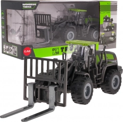 Valósághű, fémből készült villástargonca fekete–zöld kivitelben 3 éves kortól kis építőknek. A fém alkatrészeknek köszönhetően strapabíró, és készen áll a mindennapos játékra. Funkcionális emelőoszlopot kínál állítható villákkal, gumigumi abroncsokat és hátsókerék-hajtást a még élethűbb élményért.