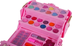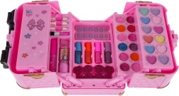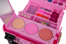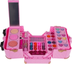 Gyermek sminkkészlet kis bőrönddel örömet szerez a 3 évesnél idősebb kis parádésoknak. A praktikus bőrönd reteszeléssel és fogantyúval sokszínű felszerelést rejt: ajakfények, szemhéjpúderek, rúzs, púderek, csillámos körömlakk, ecsetkészlet, műkörmök, ujjelválasztó és tükör. A kozmetikumok biztonságos anyagokból készültek, és könnyen lemoshatók.