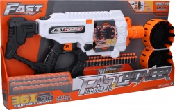Ez a gépfegyver fantasztikus választás az akciójátékok szerelmeseinek. A hablőszerek biztosítják a biztonságos szórakozást, és a két tár lehetővé teszi a gyors újratöltést, mindegyik 10 lövedéket tárol. Az ergonomikus kialakításnak köszönhetően 52x20x23 cm-es méretével remekül illeszkedik minden korosztály számára.