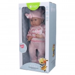 Cuki baba puha kezeslábasban, 40 cm-es méretben, ideális minden kicsi anyukának. Tökéletes játék a gyermek fantáziájának és készségeinek fejlesztésére.